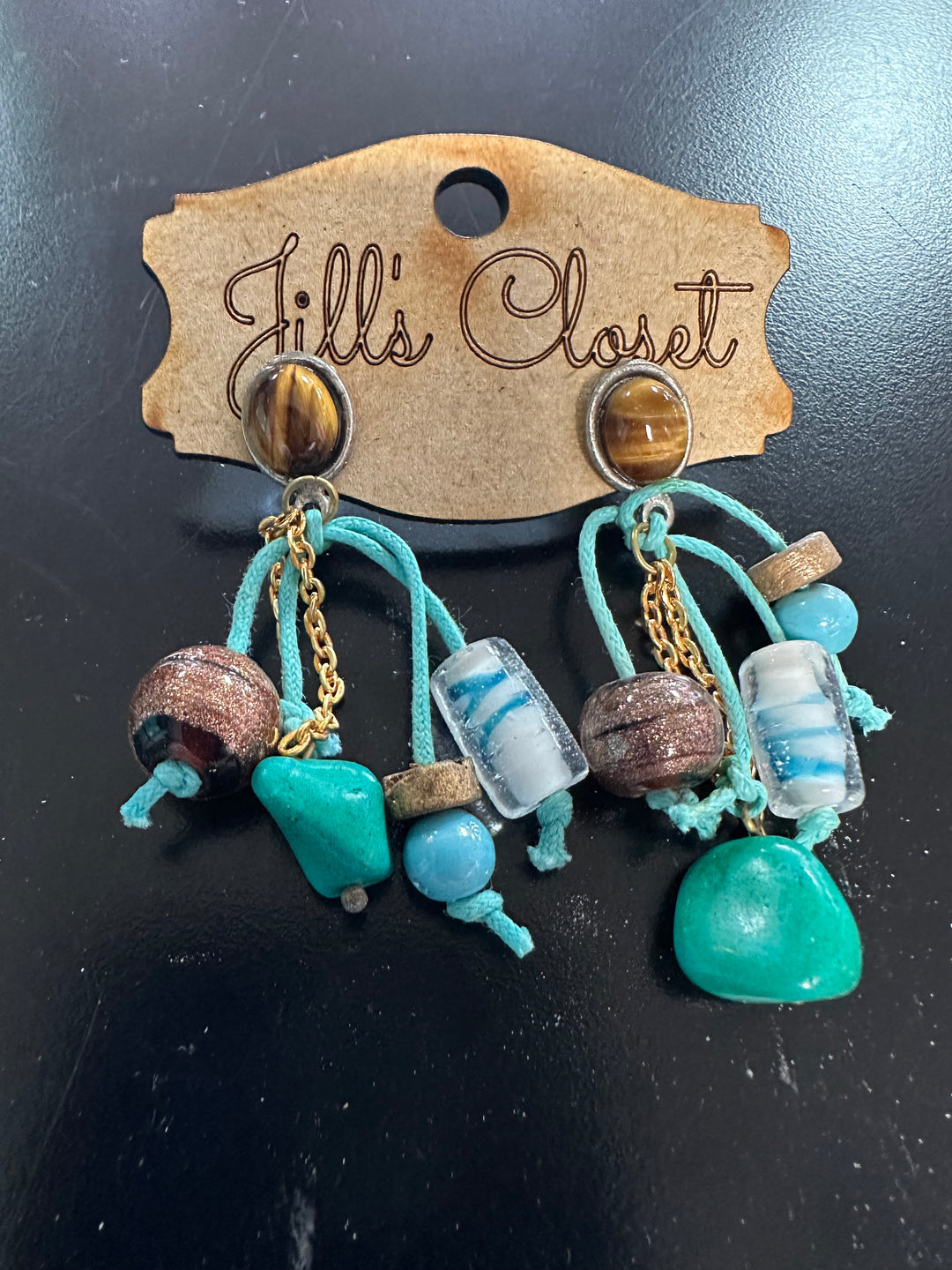 Turquoise & Pearl Cross Necklace & Earrings Set