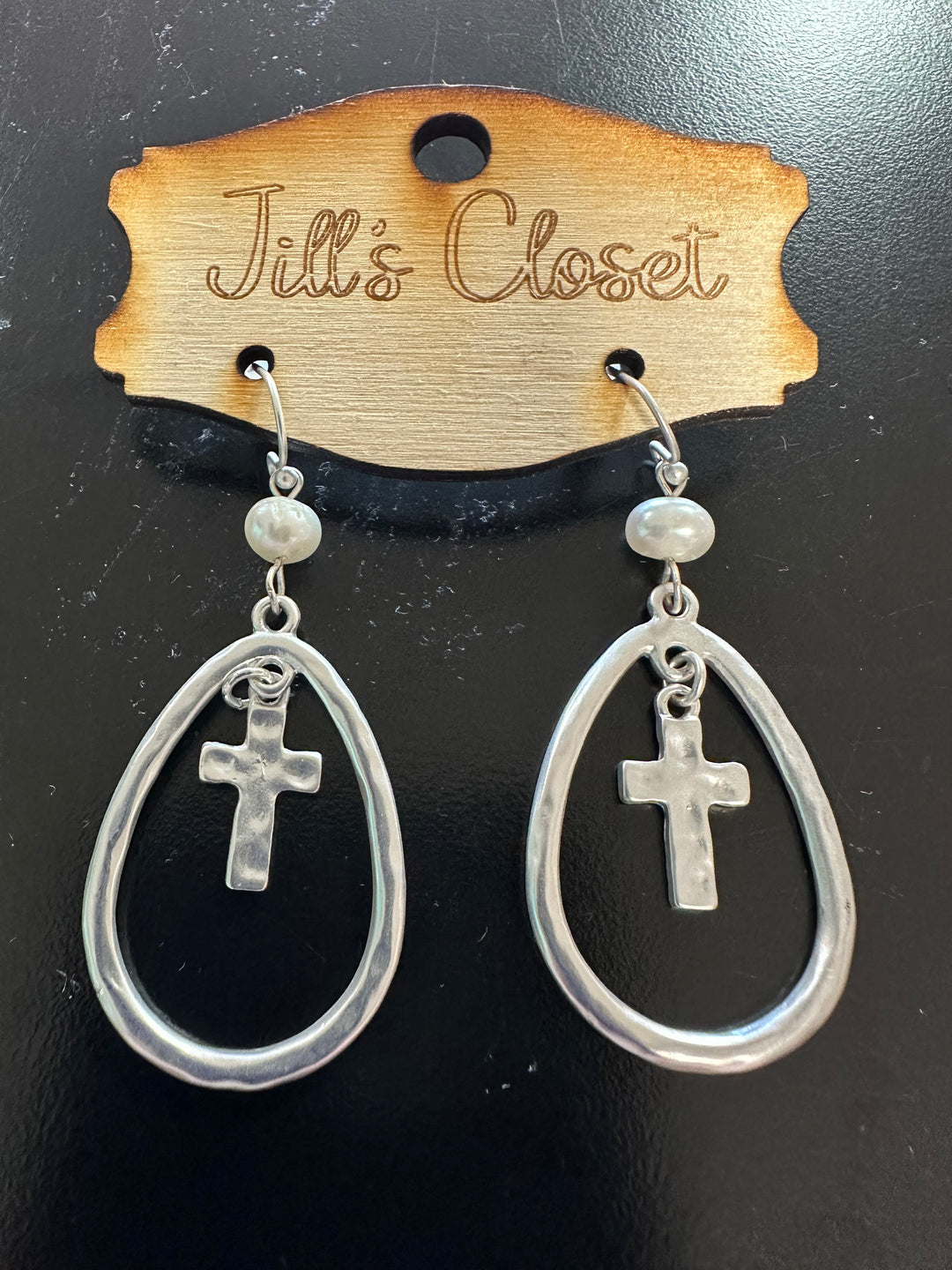 Brushed Silver Cross Earrings