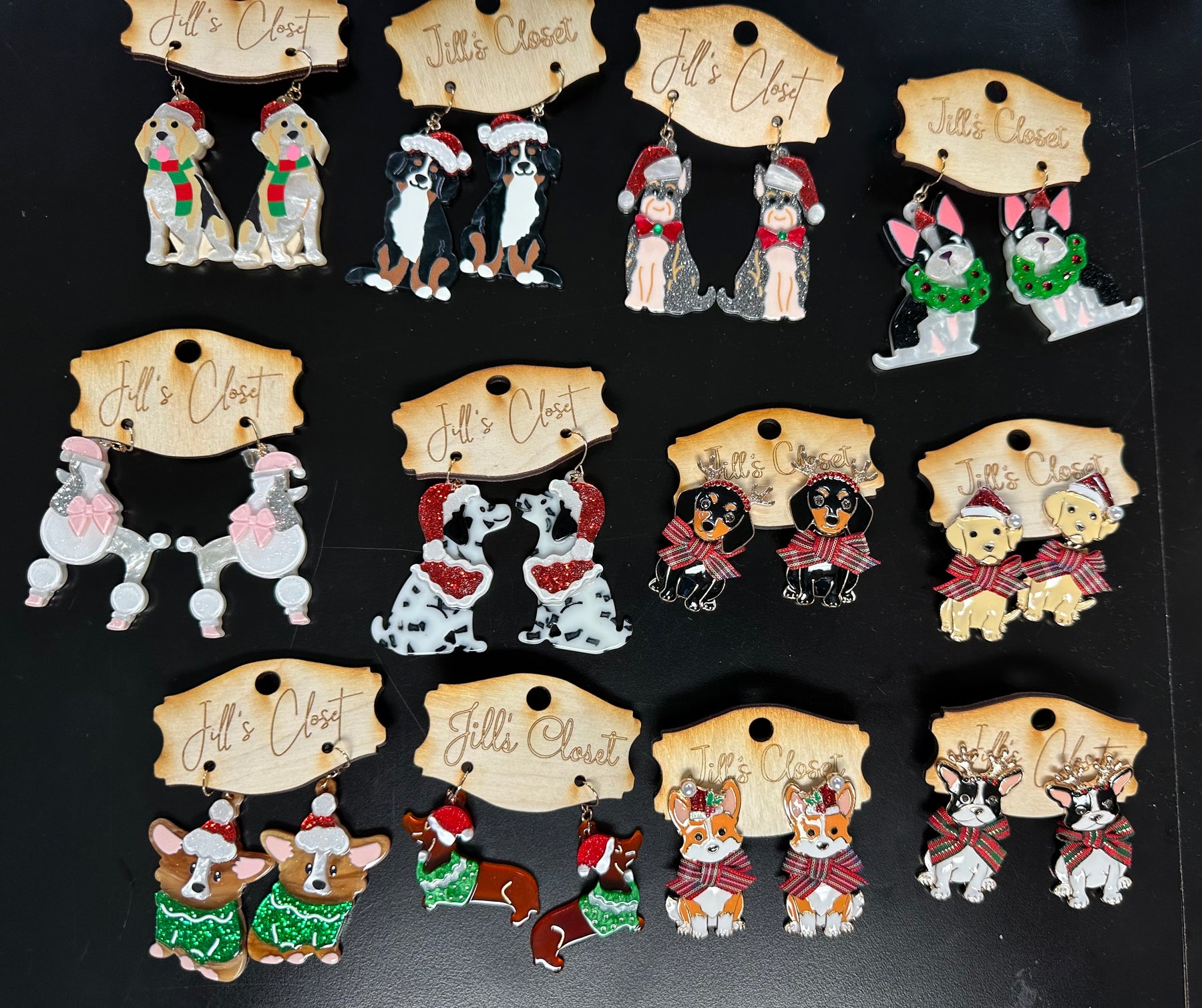 All dog moms need to celebrate the Christmas season with dog breed earrings. We haven’t styles…. An acrylic that hangs from a golden fishhook… or an enameled metal stud earring.