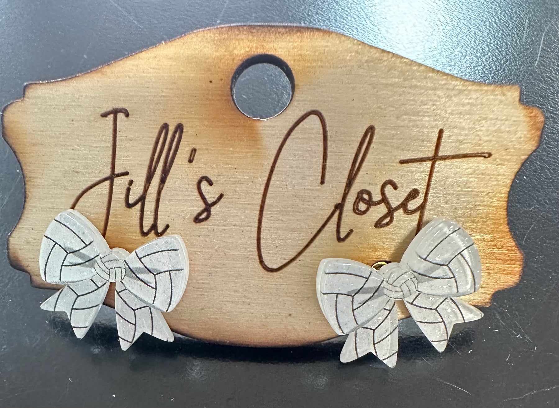 These little bows measure 5/8” across.  They are light weight acrylic bows depicting different sports.  You can choose basketball, football , soccer, volleyball or baseball.