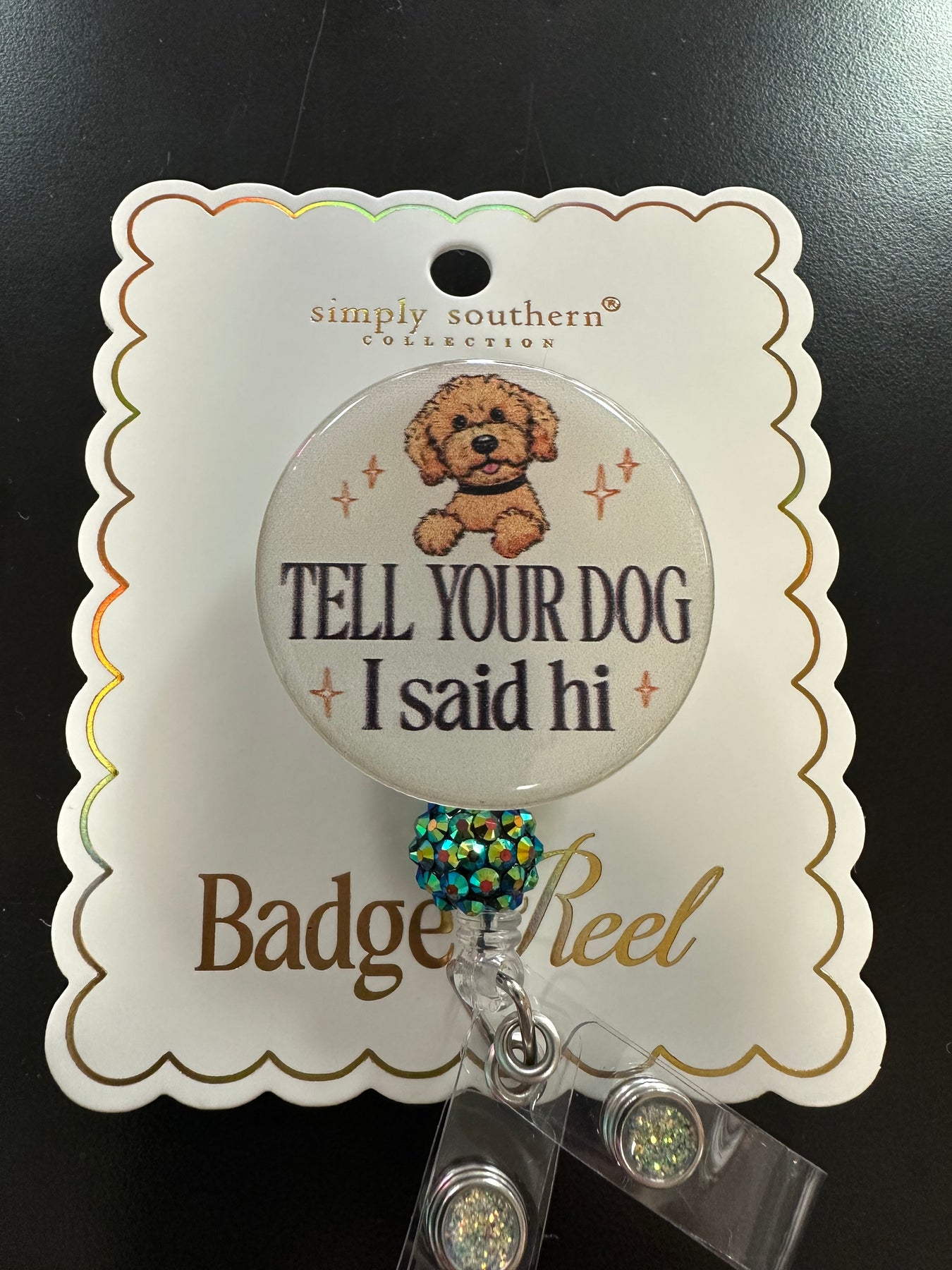 Simply Southern has the cutest badge reels with a button design that clips onto you and then the two badge clips extend from the cord inside the button. The button is 2” across. The retractable length is 26”, plenty of length for most needs. There is a bling bead on each reel. The two clear plastic tabs have a Bling snap. There are many different motifs to choose from…. Highland Cow, Mama, Teddy Bear, Si Got homely Goose, Pray, Bow, I’ll help scrub shirt, Happy Face, cowgirl boots, Dog, cherries, coffee, Good for you, Mom’s Club, and Enjoy Life.