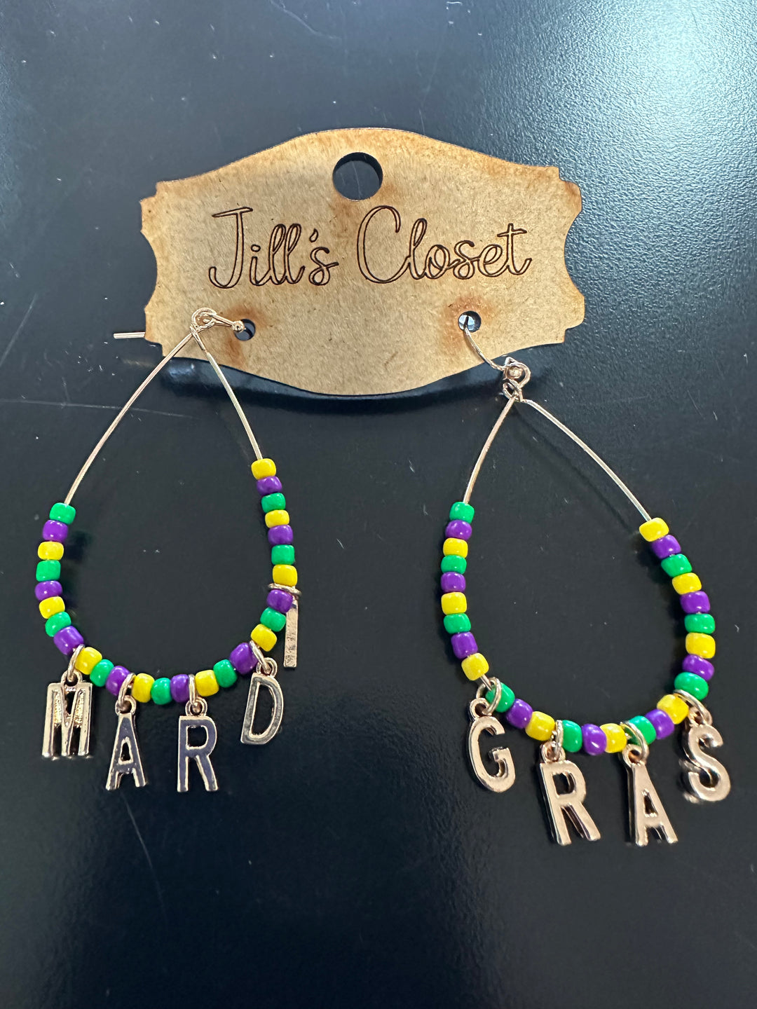 Beaded Mardi Gras Fishhook Earrings
