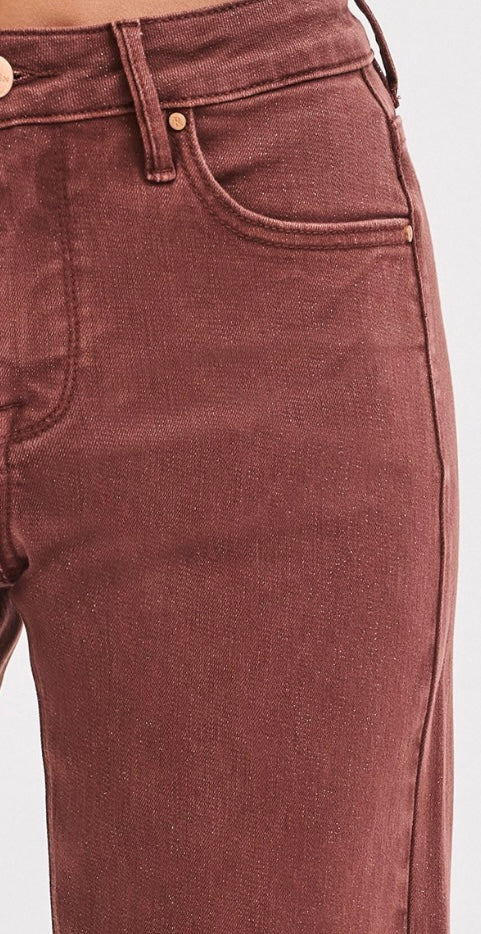 Indulge in luxury with our Risen Perfect Fall Jeans! Featuring a stunning midrise ankle-wide design in a beautiful lurex chocolate color. Elevate your style and embrace ultimate comfort. Perfect for all occasions, from casual to formal. Make a statement and stand out in these must-have pants!