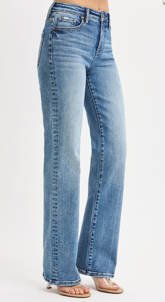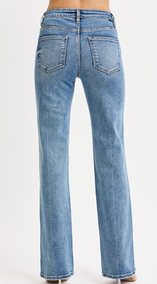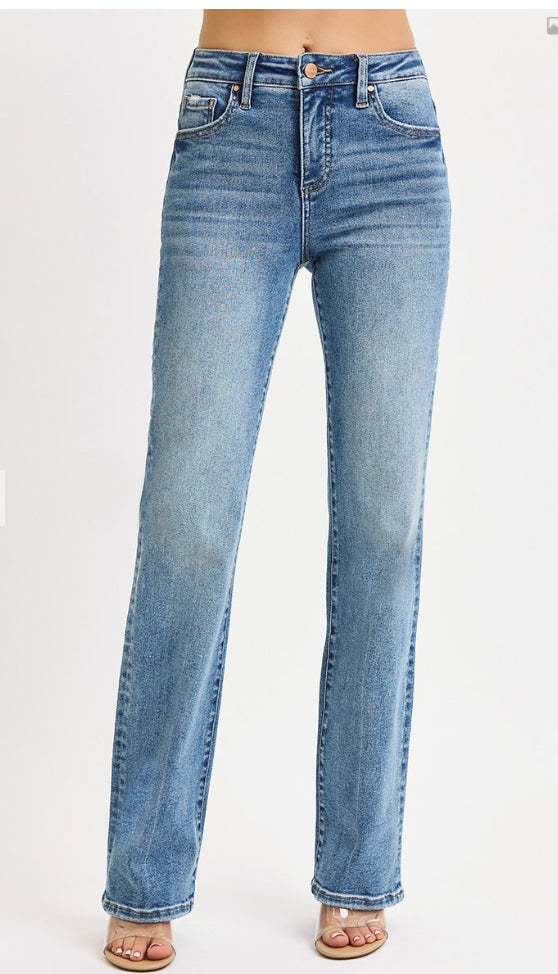 These classic high-rise jeans have straight legs. They are a staple that everyone needs in their closet. These jeans are available in size 0 to 15.