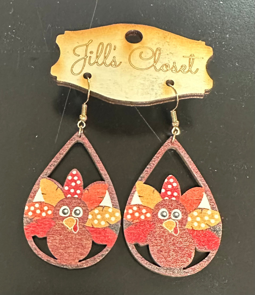 Wooden Turkey Teardrop Earrings